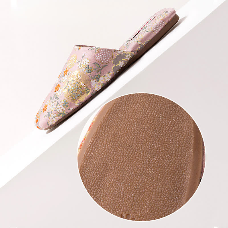 Chinoiserie Embroidered Satin House Slippers