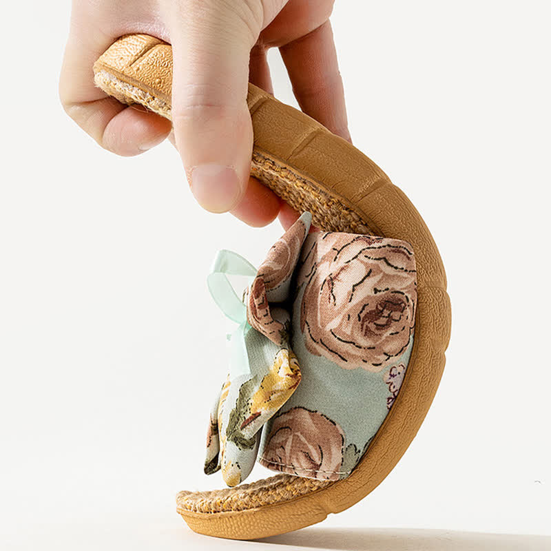 French Romantic Floral Linen Slippers